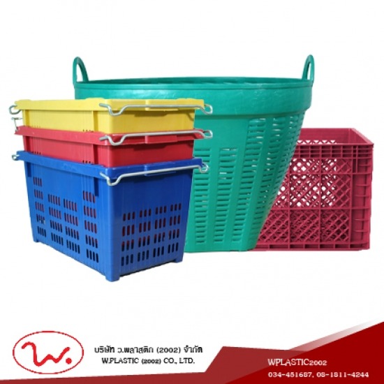 - เข่งพลาสติก เบอร์1 (เข่งผลไม้จัมโบ้) ขนาด 68x47 ซม. น้ำหนักเข่ง 3 กก. สีที่ผลิต สีดำ, สีแดง, สีน้ำเงิน, สีเขียว